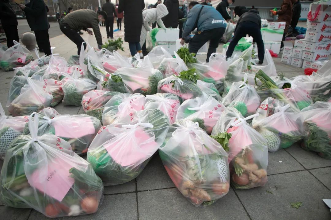 下午三時,滿載著新鮮蔬菜的兩輛貨車從首衡河北新發(fā)地農(nóng)副產(chǎn)品物流園強農(nóng)門駛出,交付淶水縣疫情防控辦,進(jìn)行分裝后,最終運輸至龍安村,并于晚上有序分發(fā)到封控區(qū)的百姓手中。