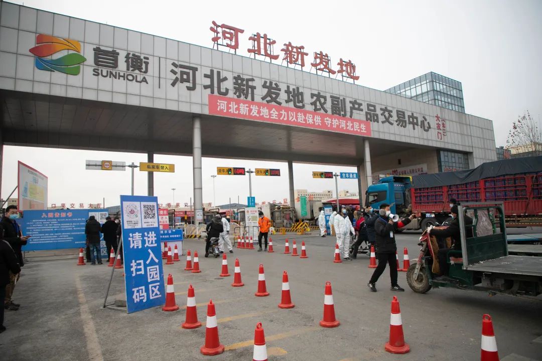 首衡河北新發地在抓好疫情防控的同時,有序運營,組織調度農產品安全供應,確保疫情防控和保供穩價“兩不誤”。