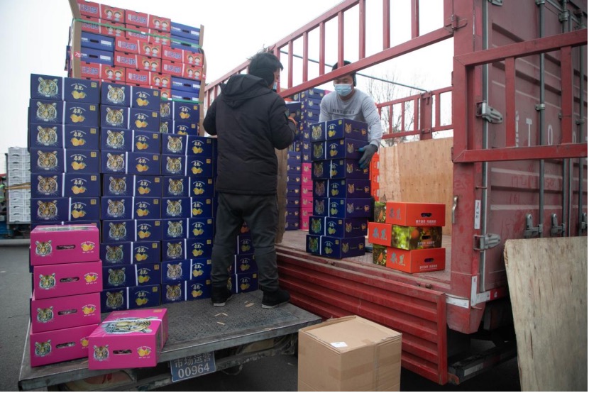 在市場里的興友果業銷售中心,近日也延長了工作時間,負責人李川表示,年跟前了,三北地區13個省市所有的客戶銷售量加起來,每天銷20幾輛車,有200多噸,是平時日銷售量的兩三倍,忙不過來了,增加7個工人做好節前保供。