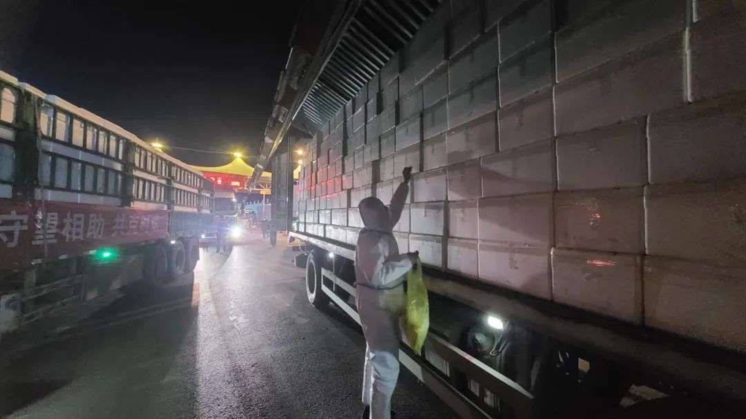 在6個上海保供物資分揀包裝區(qū)設(shè)立36條分揀裝配線,從4月1日下午13點物資陸續(xù)抵達加工區(qū)。高碑店市各科局聯(lián)合首衡河北新發(fā)地員工和場內(nèi)商戶共計1500余人,連夜不眠,趕工不停歇,按照標準工作流程和品質(zhì)要求進行貨品的分揀、包裝、裝箱。在對物流車輛進行全面消殺后,裝卸人員將物資裝運上物流車。晚上22點,第一輛滿載著保障物資的物流車從富農(nóng)門駛出,運往高碑店鐵路貨運站。在火車貨運站,高碑店市委市政府部署執(zhí)法局、交通局、農(nóng)業(yè)局等相關(guān)部門組織人員連夜進行貨物裝卸、車輛調(diào)度、交通疏導以及現(xiàn)場核酸檢測等工作。