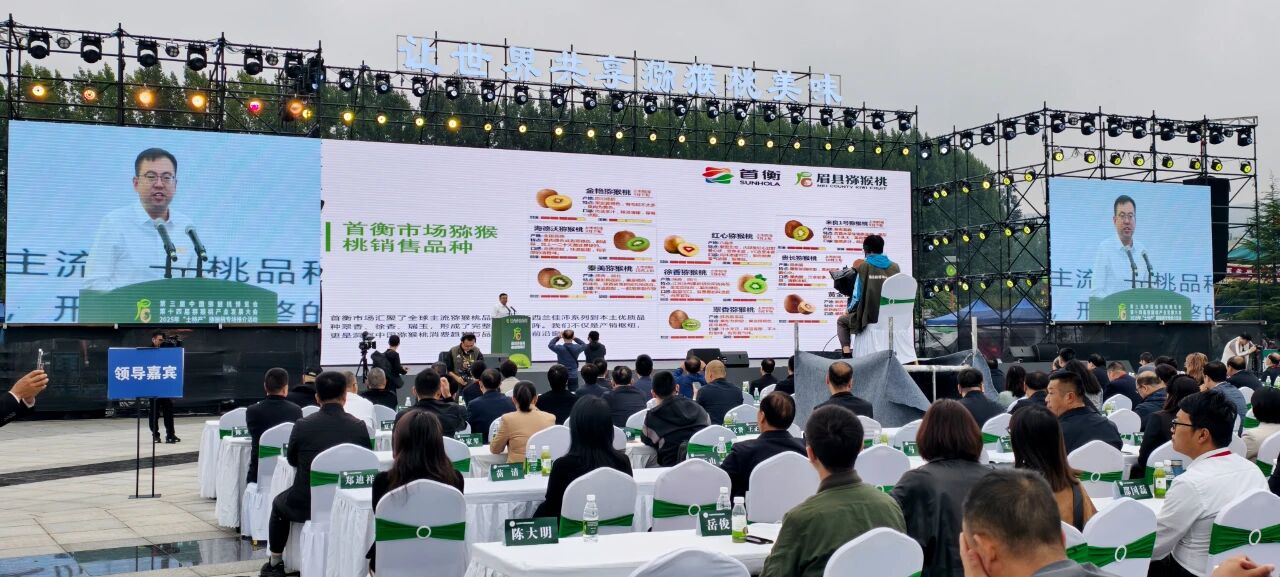 9月20日,第三屆中國獼猴桃博覽會暨第十四屆獼猴桃產業發展大會、2025年"土特產"獼猴桃專場推介活動在陜西眉縣盛大開幕。本屆大會以"讓世界共享獼猴桃美味"為主題,匯聚了國內外獼猴桃領域的權威專家、主產市縣代表和產業鏈骨干企業。首衡農副集團副總裁楊建飛受邀出席開幕式并發表講話。