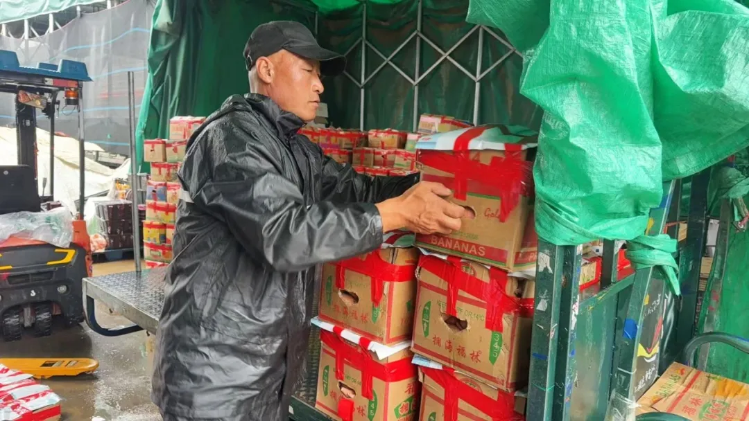 水果行業最怕雨天。雨水帶有腐蝕性,裝卸時一旦淋濕,鮮度下降、損耗陡增,直接影響銷售。許旭剛到首衡時就遇到了“傘位緊張”的難題。“冬天下雪、夏天暴雨,等排隊裝車的時候遇上天氣突變,哪怕車蓋了布,貨也容易受損。”