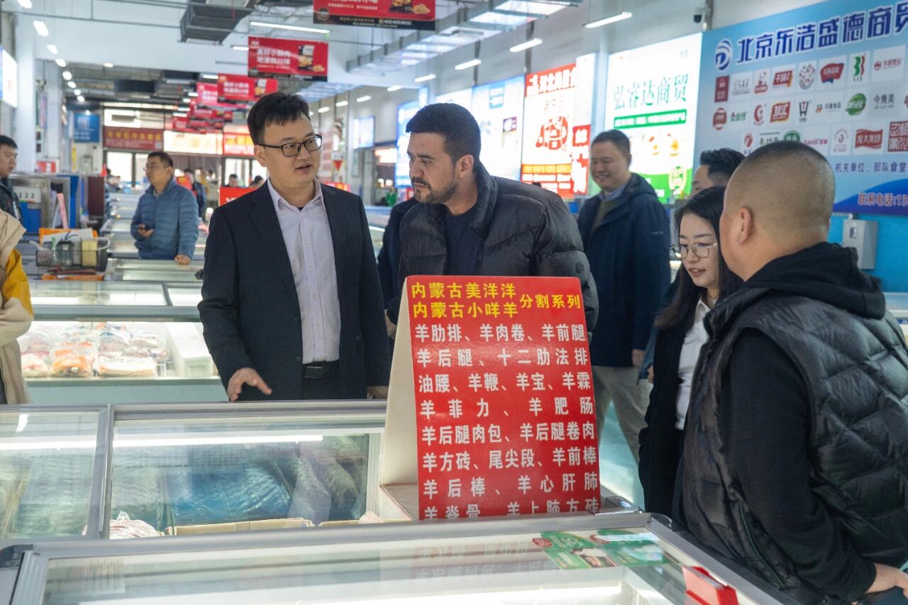 在智慧冷鏈物流園,代表團重點考察了肉類商戶的運營情況。申彤介紹,截至目前,首衡高碑店市場已建成總量達320萬立方米的現代化冷庫集群,并擁有200余條高效運轉的冷鏈物流專線,為產品流通提供了強有力的保障。首衡卓越的運營規模與模式贏得了代表團的高度評價。代表團隨后參觀了食品產業園的肉類加工企業,對首衡全產業鏈的整合能力深表贊賞。