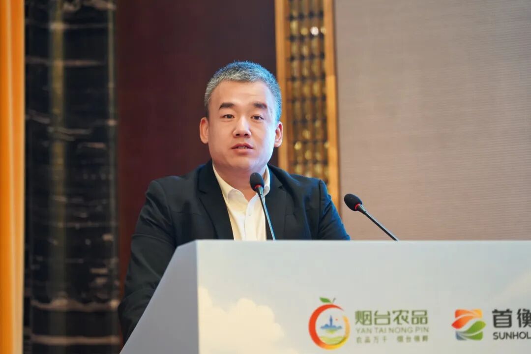 首衡農副集團副總裁楊建飛在發言中,對煙臺政企代表及采購商伙伴的到來表示熱烈歡迎。他指出,煙臺作為北緯37°黃金緯度帶的濱海城市,孕育了煙臺蘋果、萊陽梨、“煙薯25”等一批兼具品質與口碑的地標農產品。而首衡集團作為國家級農產品流通樞紐,已構建起覆蓋京津冀、輻射“三北”地區的一體化流通體系,2024年首衡高碑店市場煙臺水果總進場量超9萬噸,蔬菜集散量近45萬噸。這些數字是北方市場對煙臺品質的“信任票”,更是兩地合作的堅實基礎。楊建飛表示,首衡愿以此次推介會為契機,推動雙方從“買賣關系”升級為“發展共同體”,讓更多“煙臺臻品”通過首衡通道走進華北千家萬戶。