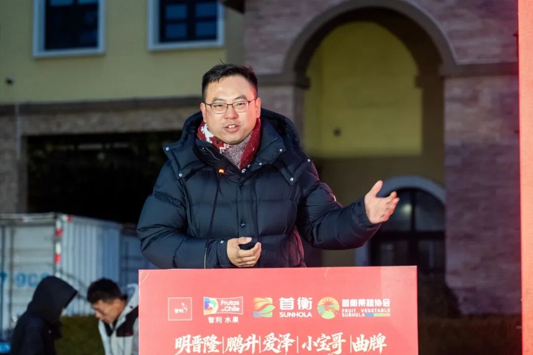 活動在熱烈的氛圍中拉開帷幕。智利駐華大使館商務參贊安德烈斯·格鮑爾首先上臺致辭。他盛贊高碑店市場作為“國家供應鏈的戰略核心引擎”的重要地位,并透露了振奮人心的行業數據:2025/2026產季,智利車厘子預計總產量將達65.5萬噸,其中超90%將供應中國市場。他表示,智利方面將持續優化物流、加強推廣,與中方伙伴攜手,將更新鮮、更優質的智利車厘子高效送達中國消費者手中。
