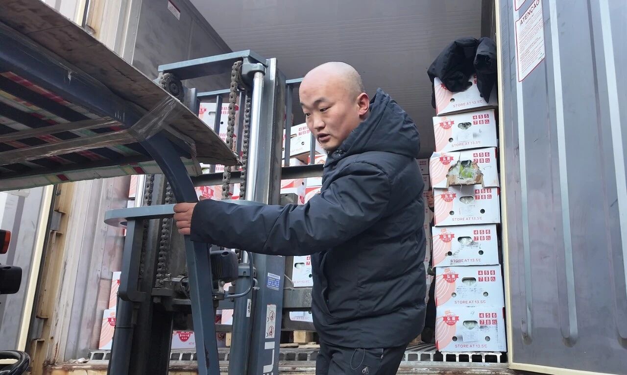 早上七點,氣溫低至零下五度。裝卸工劉杰和他的隊員們,已準時出現在首衡高碑店市場的裝卸作業區。車廂門打開,冷霧裹挾著水果的清新氣息涌出,標志著一天的工作正式開始!