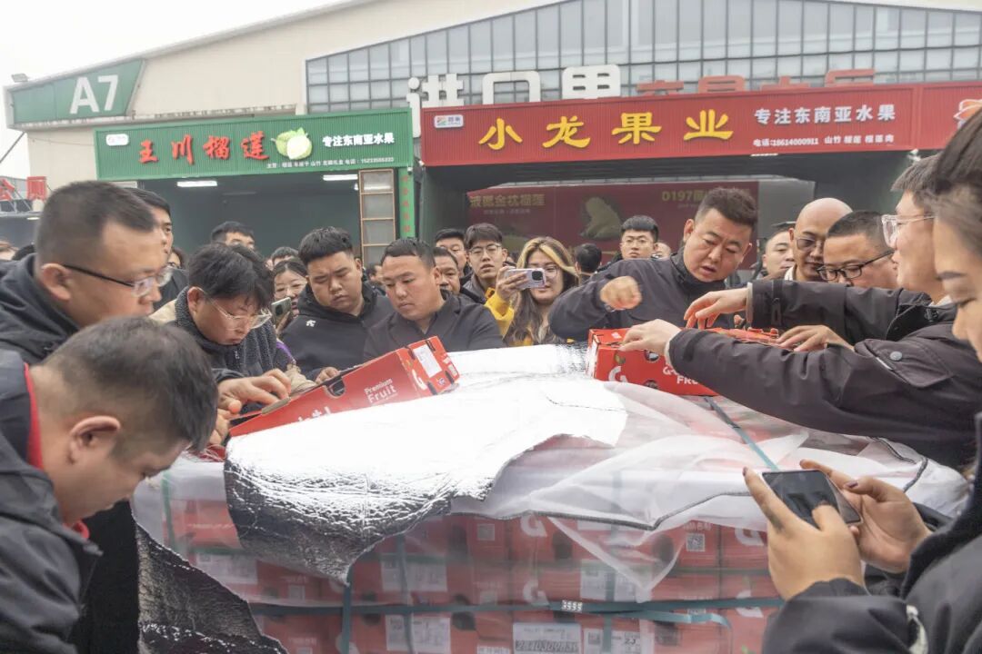 采購商趙耀剛在人群中敲定今日54噸的訂單,他坦言:“后續還要追加。現在車厘子不再是送禮專屬,已經成了北方家庭的‘年貨標配’。價格、品質穩定,下游客戶都是整箱買回去自家吃、招待客人。”