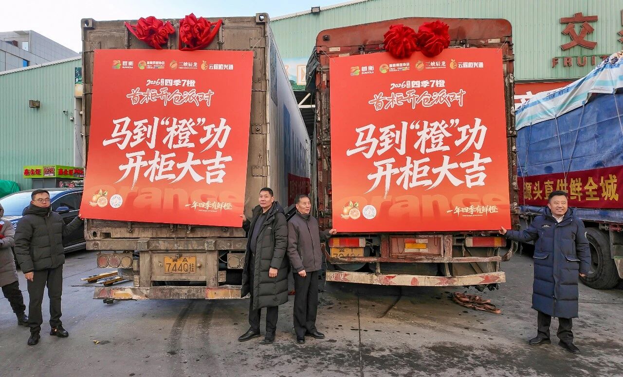 1月20日,“一年四季有鮮橙——‘四季7橙’開(kāi)倉(cāng)儀式”在首衡高碑店市場(chǎng)隆重舉行。本次活動(dòng)由首衡集團(tuán)、云稼集團(tuán)、永泰商貿(mào)聯(lián)合舉辦,核心柑橘產(chǎn)區(qū)代表、行業(yè)合作伙伴及采購(gòu)商代表齊聚一堂,共同見(jiàn)證該品牌正式入駐中國(guó)北方最大的農(nóng)產(chǎn)品流通樞紐。