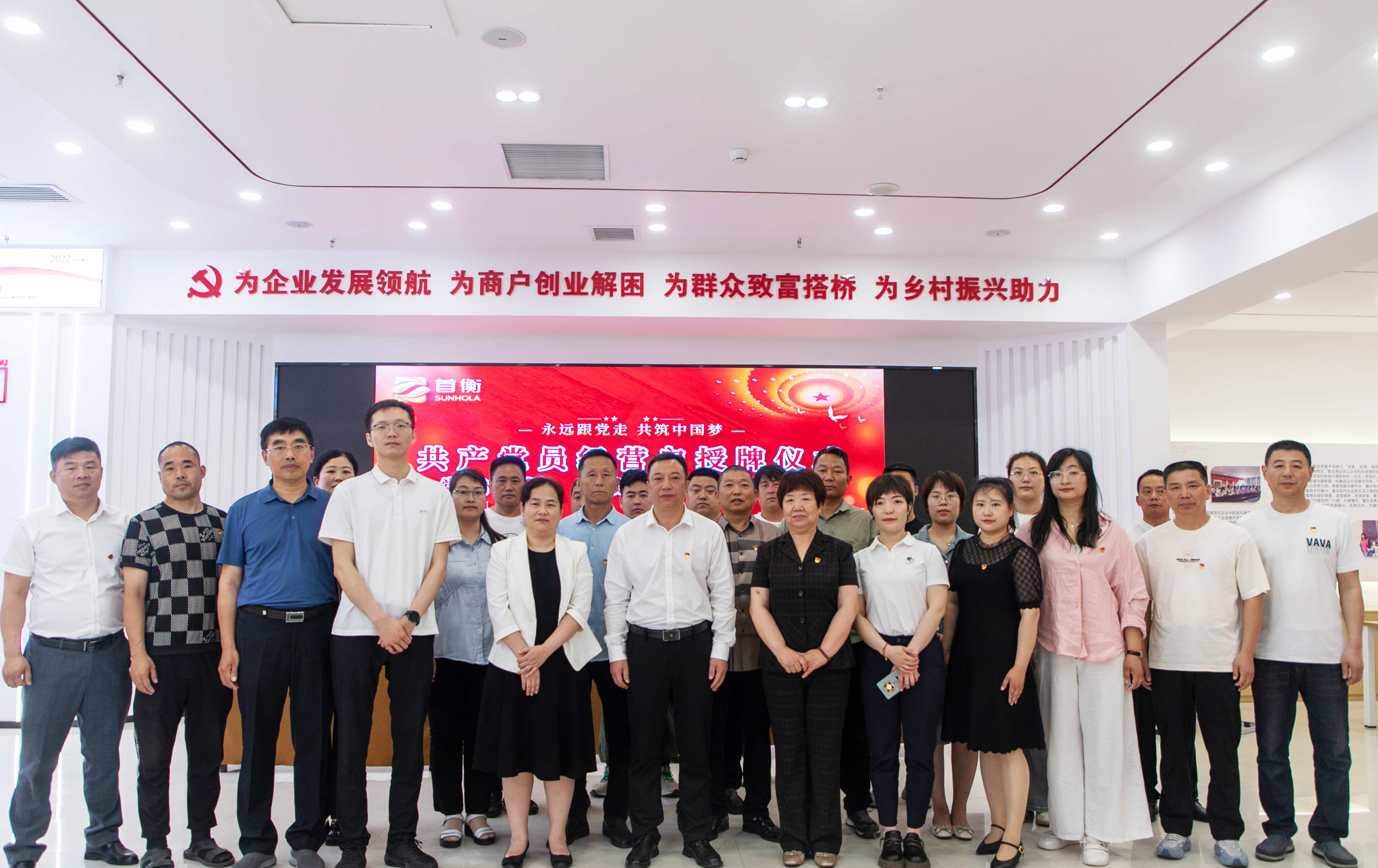 黨建引領,首衡先鋒,誠信經營。5月29日,首衡集團共產黨員經營戶授牌儀式圓滿舉辦。保定市非公經濟和社會組織工委專職副書記崔艷麗同志、秘書處處長張宸碩,高碑店市委組織部副部長張寶旺,首衡集團黨委書記魏樹儉、副書記王景榮,首衡集團黨支部書記代表、優秀黨員商戶代表參加活動。本次活動由王景榮主持。