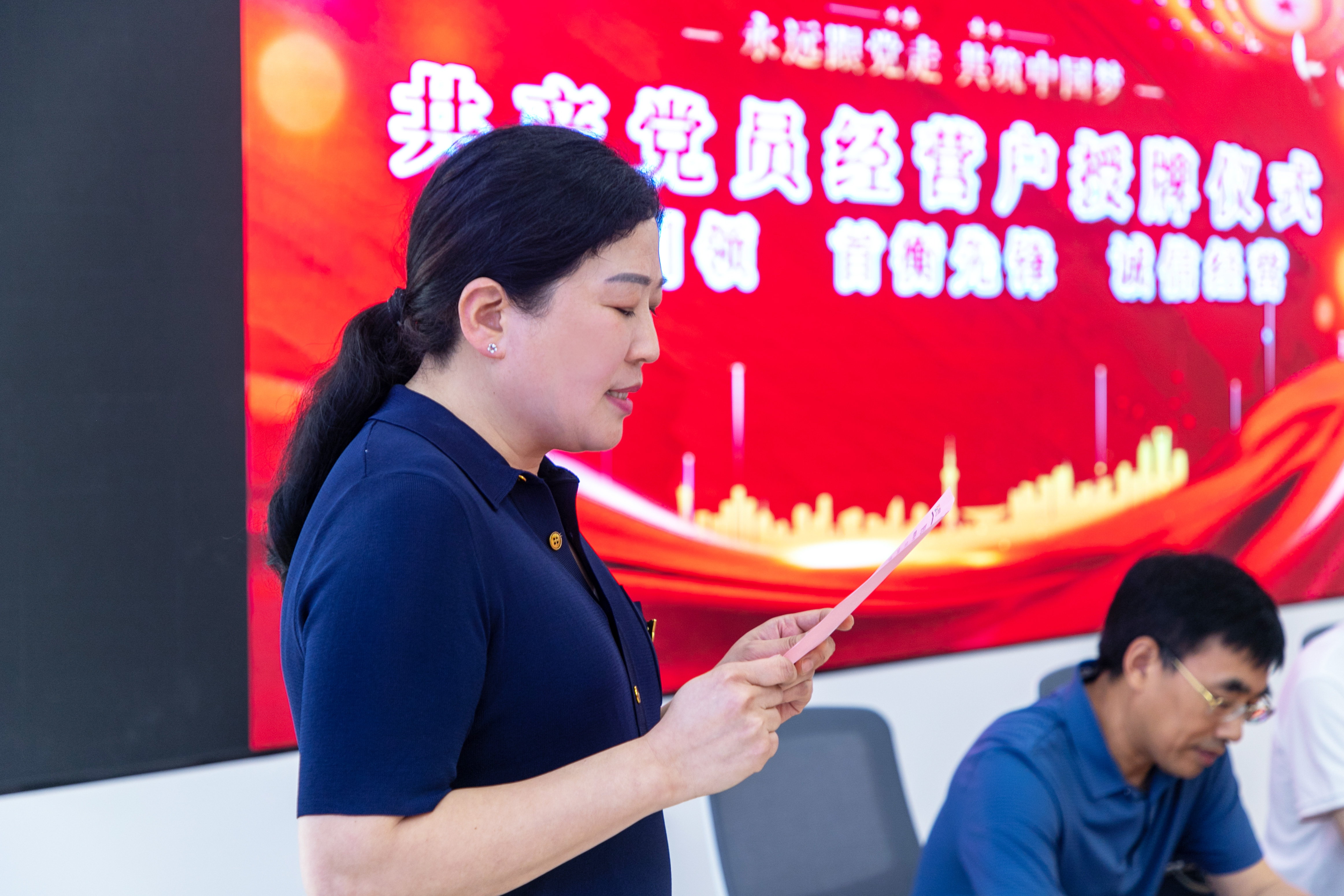 農副公司、冷鏈公司商戶董靜、安英俊分別代表共產黨員經營戶發言。“我將以一名黨員的身份嚴格要求自己,嚴格依法依規誠信經營,積極服務社會,充分發揮黨員的先鋒模范帶頭作用,為消費者做好服務、為行業發展、鄉村振興不斷貢獻力量,為黨旗增輝,為黨徽添彩。”董靜介紹。